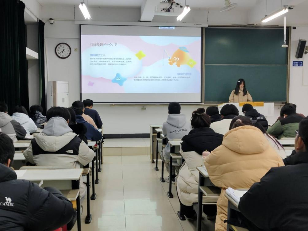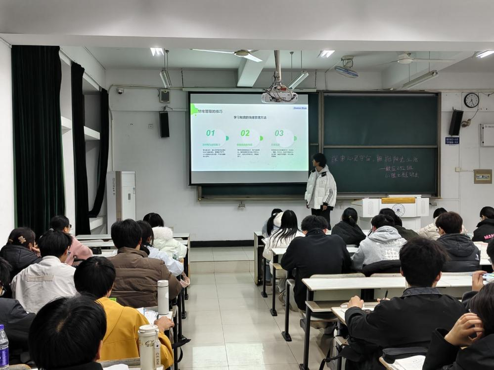 本次班会聚焦“情绪管理”与“考试焦虑缓解”两大核心议题。各班心理委员立足班级学情与学生心理特点,创新采用“理论讲解+互动体验+情景实践”的多元活动模式,推动心理健康教育见行见效:以具象化心理短片触动人心,用鲜活的场景与真实的故事引发情感共鸣,让心理认知有温度、有深度;以典型性案例阐释理论,结合新生常见的宿舍矛盾、学业压力等具体困扰拆解“情绪ABC理论”,让抽象知识接地气、易理解;以体验式调适训练赋能成长,带领学生现场练习深呼吸调节法、积极自我暗示等实用技巧,让理论学习转能力、有抓手。一系列针对性活动的开展,有效增强新生应对入学适应期挑战的心理韧性,为后续学习生活的平稳开展筑牢了坚实心理防线。
