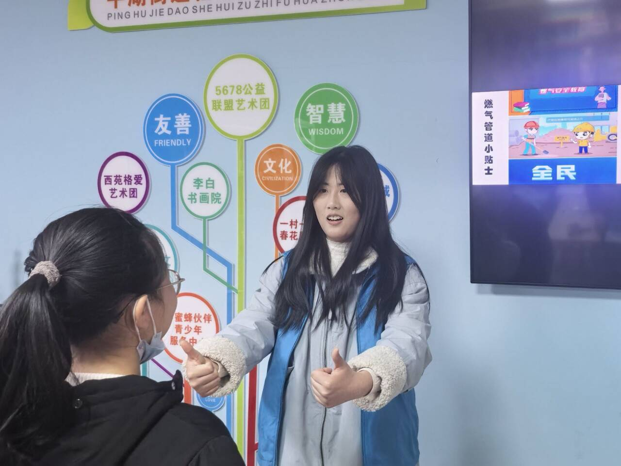活动现场,志愿者们化身“安全小老师”,耐心指导孩子们辨识生活中常见的供水、燃气、排水等管道类型,以及不同功能井盖的标识特征。通过提问引导思考、通俗化讲解,志愿者生动阐述了管道设施的作用与相关安全风险。为深化学习效果,活动特别设置安全动画展播和问答互动环节。动画短片以直观的画面展示了违规操作可能带来的危害,进一步增强儿童安全防范意识。在互动环节中,孩子们踊跃举手、积极抢答,在轻松氛围中牢记“不随意踩踏井盖”“不向管道管道井内丢弃杂物”“发现燃气泄漏第一时间告知大人”等安全守则。