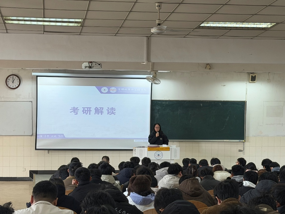 于阶教101召开2023级“砥砺奋进,研途启航”考研专题分享会。会议由2023级辅导员钱丹丹、曹宇主持,全体2023级学生参会。